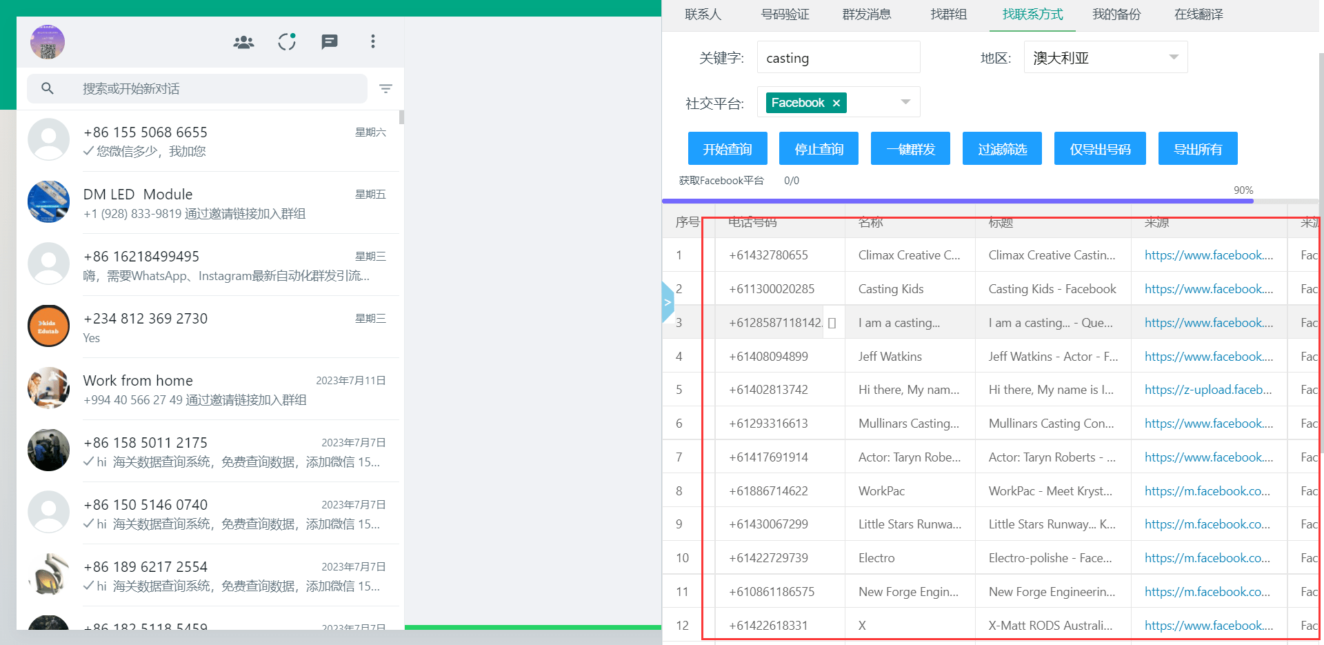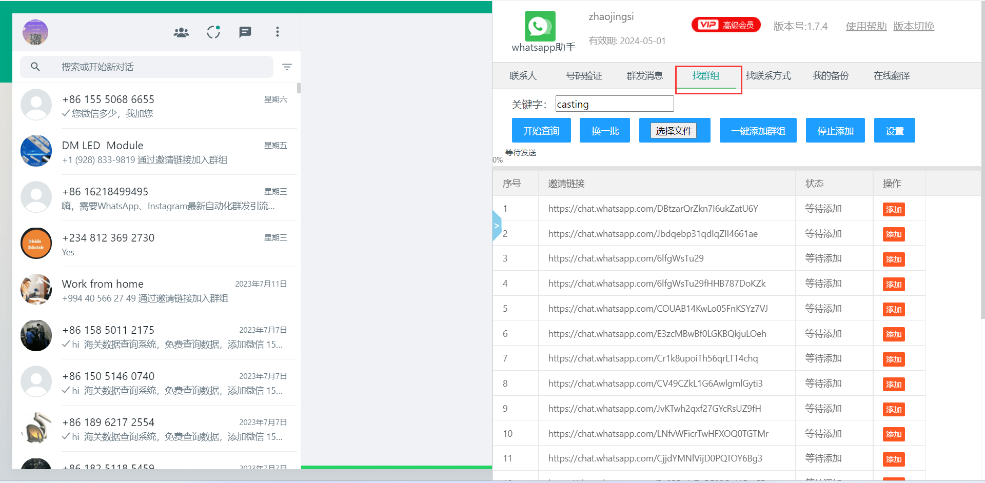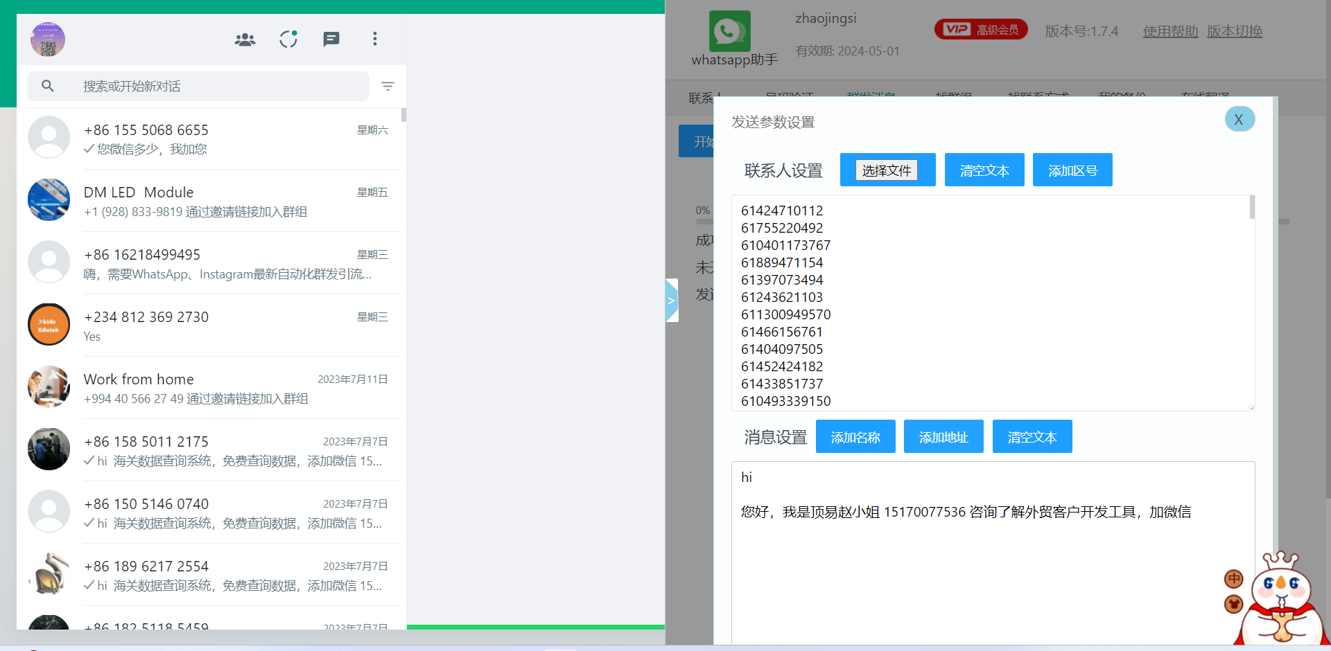 whatsapp群发助手是顶易公司首家研发,可以搜索客户的电话号码,搜索群组,添加群组,提取群组成员,群发消息,号码验证,备份数据,在线翻译等功能,能帮助外贸企业快速,高效的跟采购商建立联系,实时拓客。