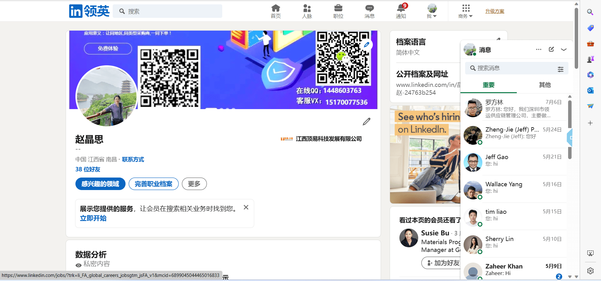 领跑助手,会绑定您的领英账号,给您的领英账号批量添加好友,给好友群发消息。