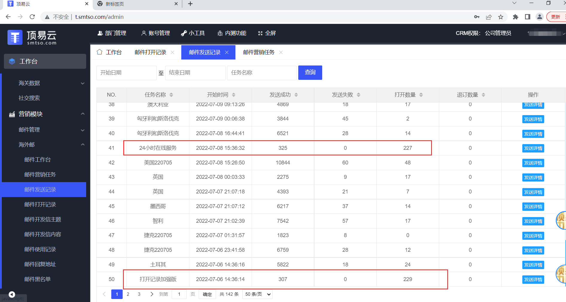 海外邮是顶易云里面的邮件营销系统,采用edm邮件发送,企业级邮局假设,白名单协议,到达率可以做到96%,打开率也超高,发送完可以查看具体的发送明细,打开记录等。