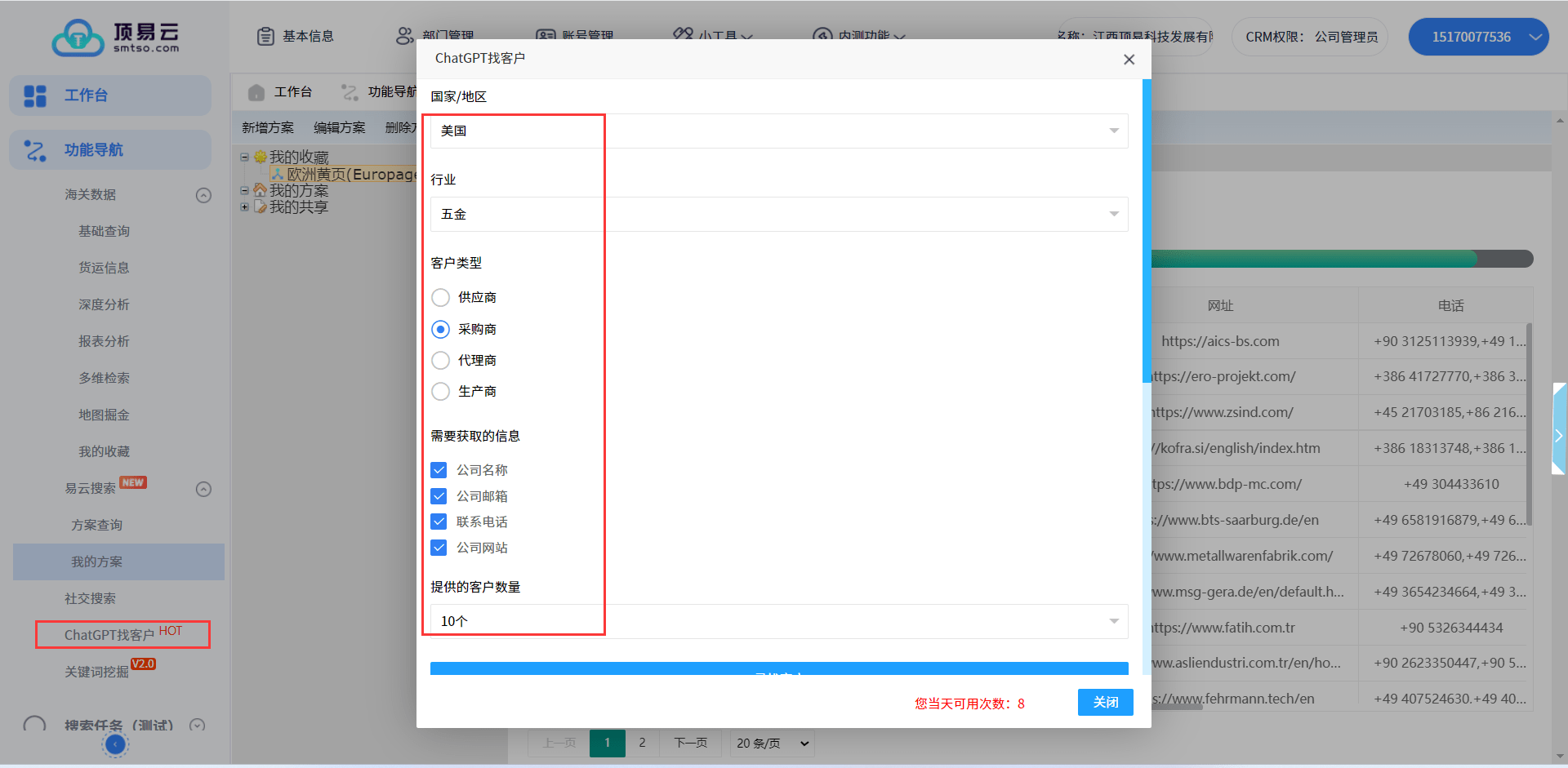 顶易携手chatGPT功能,帮助外贸企业实现精准拓客,不放过任何一个找客户的渠道和工具。