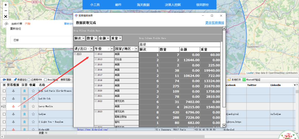 关联了海关数据,这样我们就能知道这个客户的进口情况,方便后续的开发和转化了。