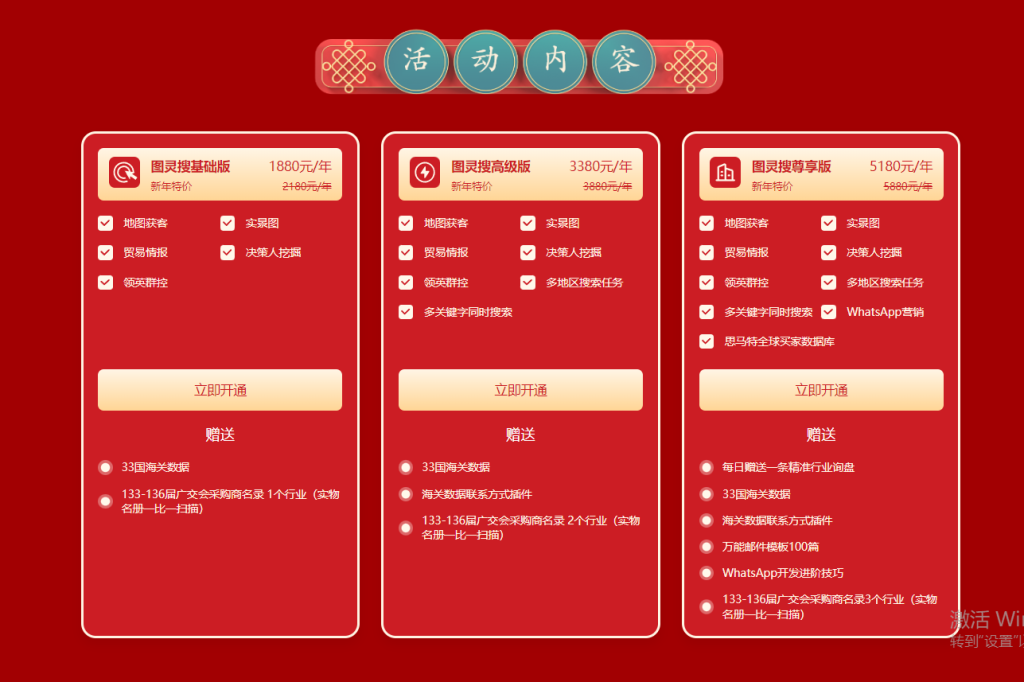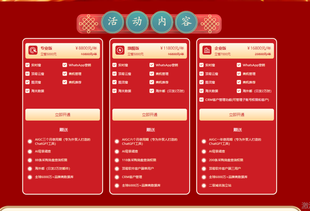 顶易公司主推的开发客户软件有三款,一款是海关数据,一款是图灵搜地图,一款是顶易云全渠道获客。