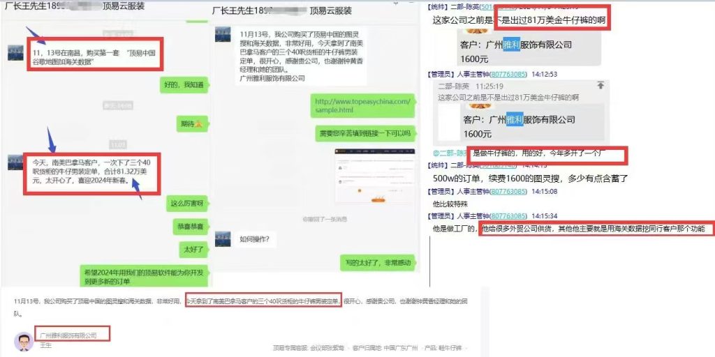 今天给大家分享一个非常有意义的开发国外客户成功案例,有很多开发客户的经验和技巧分享,王先生是广州雅利服饰有限公司的老板,是一个工厂,主营业务是生产牛仔裤,之前一直给外贸公司供货,自己的工厂没有直接做出口业务,在2023年11月份购买了我们的图灵搜地图搜索软件,打算自己开发客户,用软件开发到了南美巴拿马40尺柜的牛仔裤订单,总金额共计81万美金。第二年,就增加了一个工厂,主要生产牛仔裤,因为真的是供不应求。