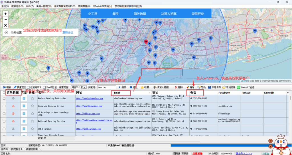 对于找到的客户电话,可以验证 whatsapp 账号,实现精准社交营销。