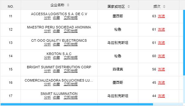 最后您还能分析您的同行,选取规模和实力与自己类似的同行进行搜索,他出口哪些国家,合作哪些客户一清二楚。