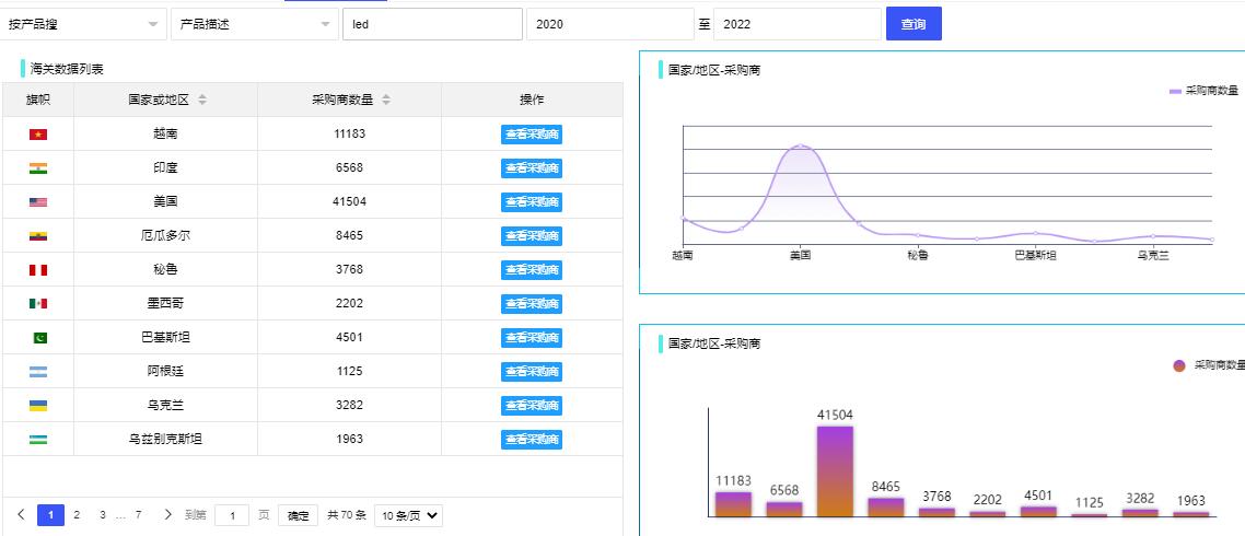 - 分析市场:只要输入您的产品,就能一键获取采购商分布图,重点市场一目了然。