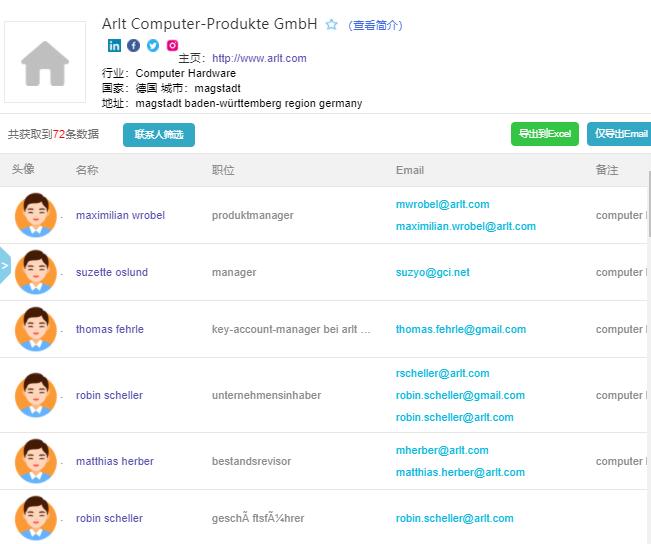 - 抓取联系方式:采购商列表配合“决策人挖掘”功能,可以快速获得决策人邮箱、职位,直接联系老板和采购经理!