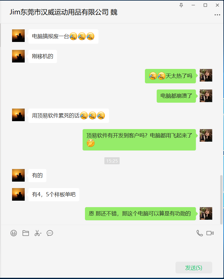 客户C:东莞市汉威运动用品有限公司,使用软件几天的时间,就开发了5个样品单。