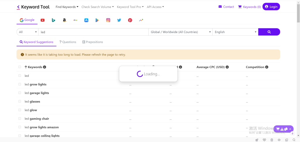 关键词工具分析方法,我们可以借助一个网址,https://keywordtool.io/,在这里只要输入你的产品名称,工具就会展示出来很多产品相关的热门词。