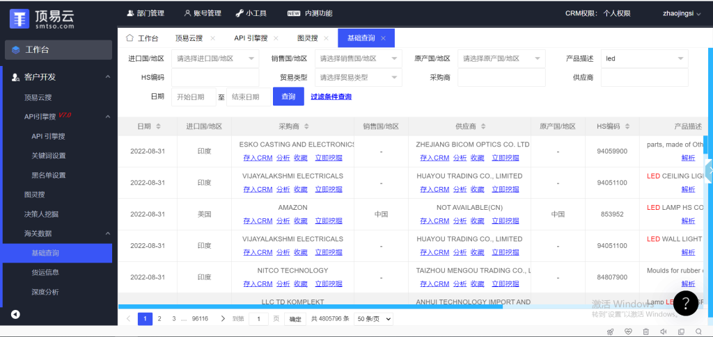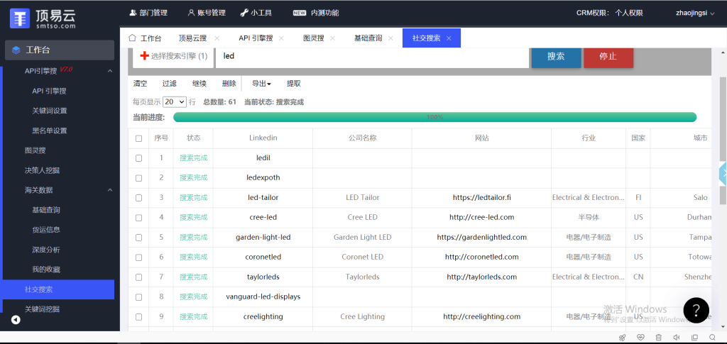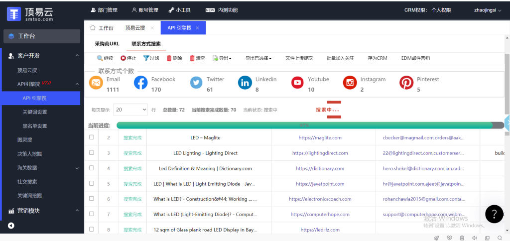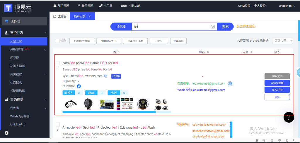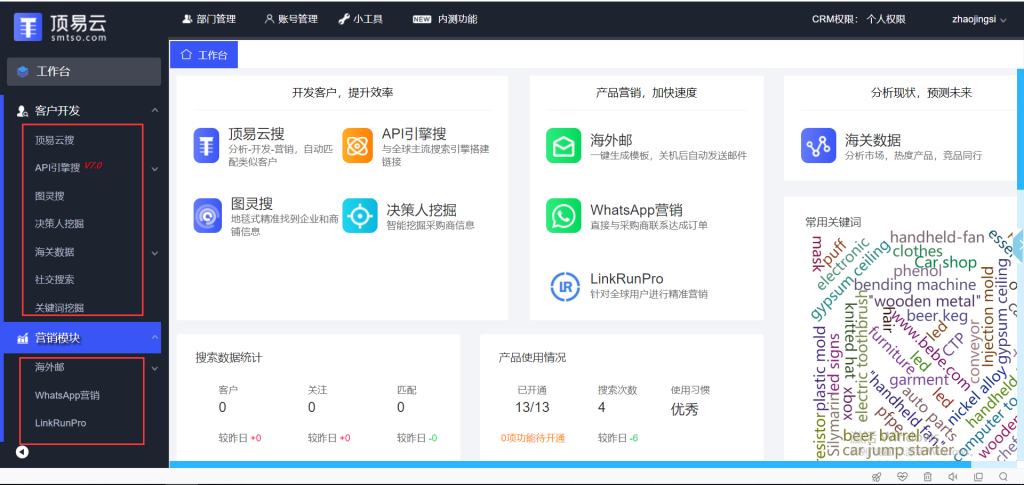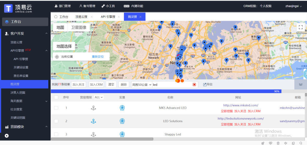 具体功能:顶易云搜+商机推荐+api引擎搜+图灵搜谷歌地图搜索+决策人挖掘+海关数据查询+社交媒体账号+whatsapp营销+linkedin营销+邮件营销