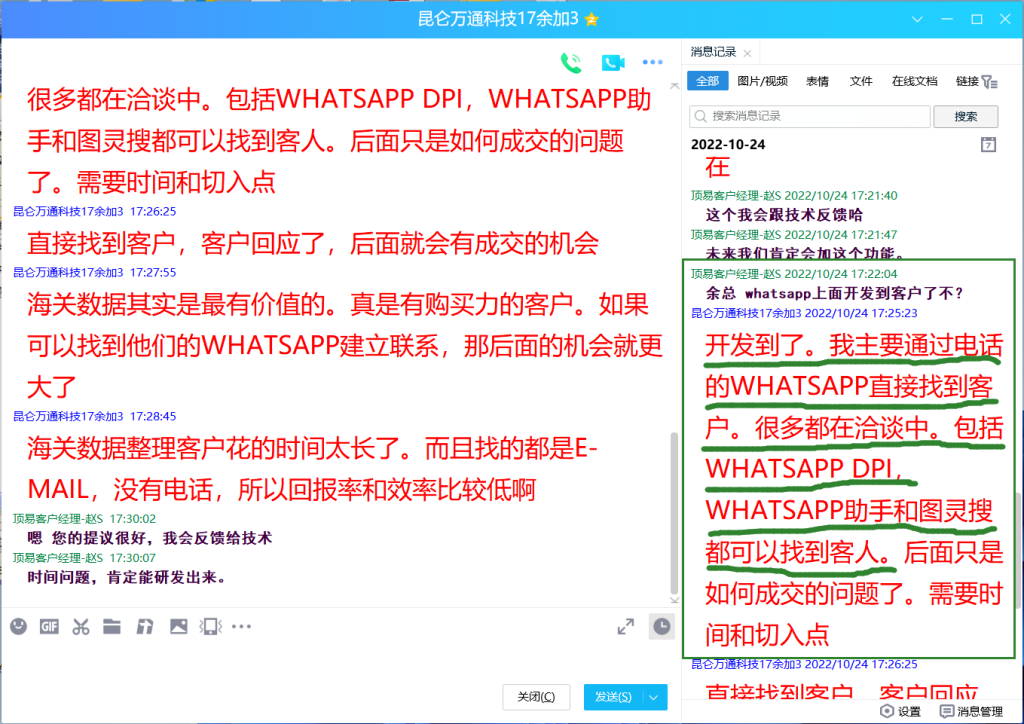 经验分享:余先生,续费使用软件7年,反馈whatsapp营销效果最好,其中谷歌地图搜索,海关数据的搜索效果最好,有开发到稳定的客户。这就是多渠道开发客户的优势和效果!