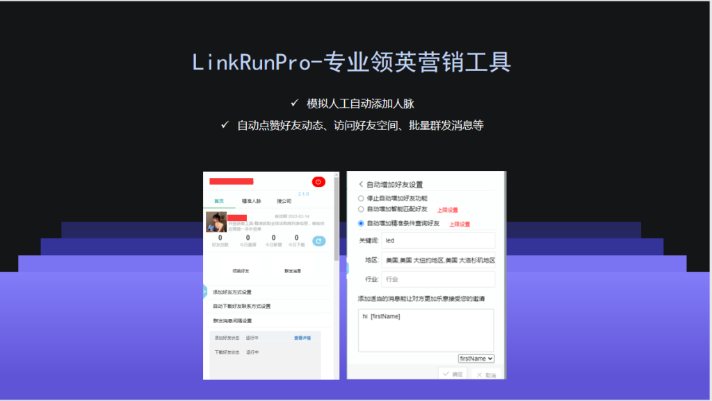 Linkrunpro是一款基于领英进行社媒营销的强大工具,如果您想打造公司的领英平台,Linkrunpro将是您最好的帮手