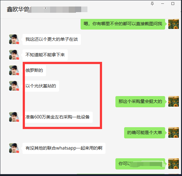 2022年8月开始用顶易云,一周反馈开发中东4个样品单,后正式开单意大利20w美金已收款,目前在谈俄罗斯600w美金订单