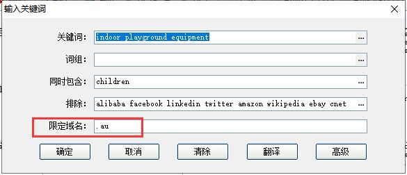 还是以indoor playground,这里要略作调整,改为indoor playground equipment。这是在深入研究后做的调整,中国同行的网站基本是只有indoor playground,所以很容易搜到中国供应商。但是加上equipment,搜的就精准很多。要针对不同国家调整关键字才行