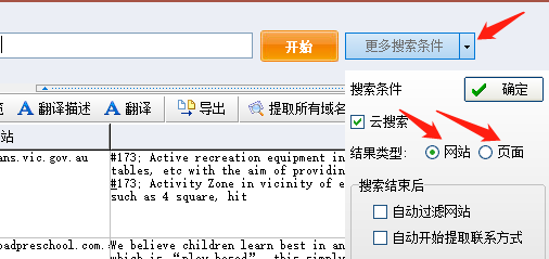 点更多搜索条件,默认是搜索页面,这里记得修改为网站。温馨提示,不搜限定域名的时候,还是要选择页面搜索,才能搜索效果好。搜限定域名务必修改为网站