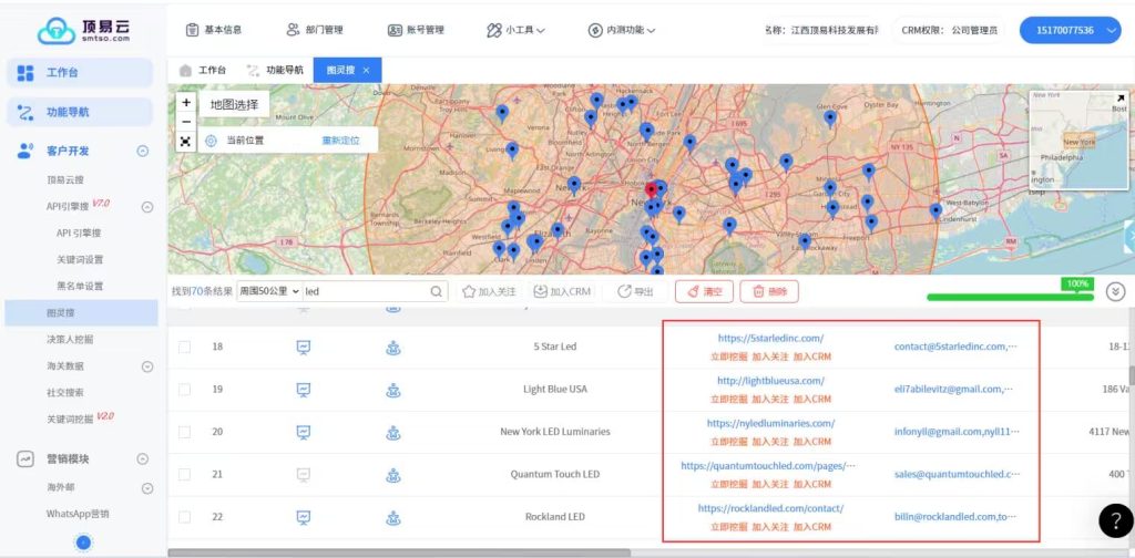 嵌入谷歌地图:可以针对谷歌地图精准搜索国外客户的邮箱和电话号码