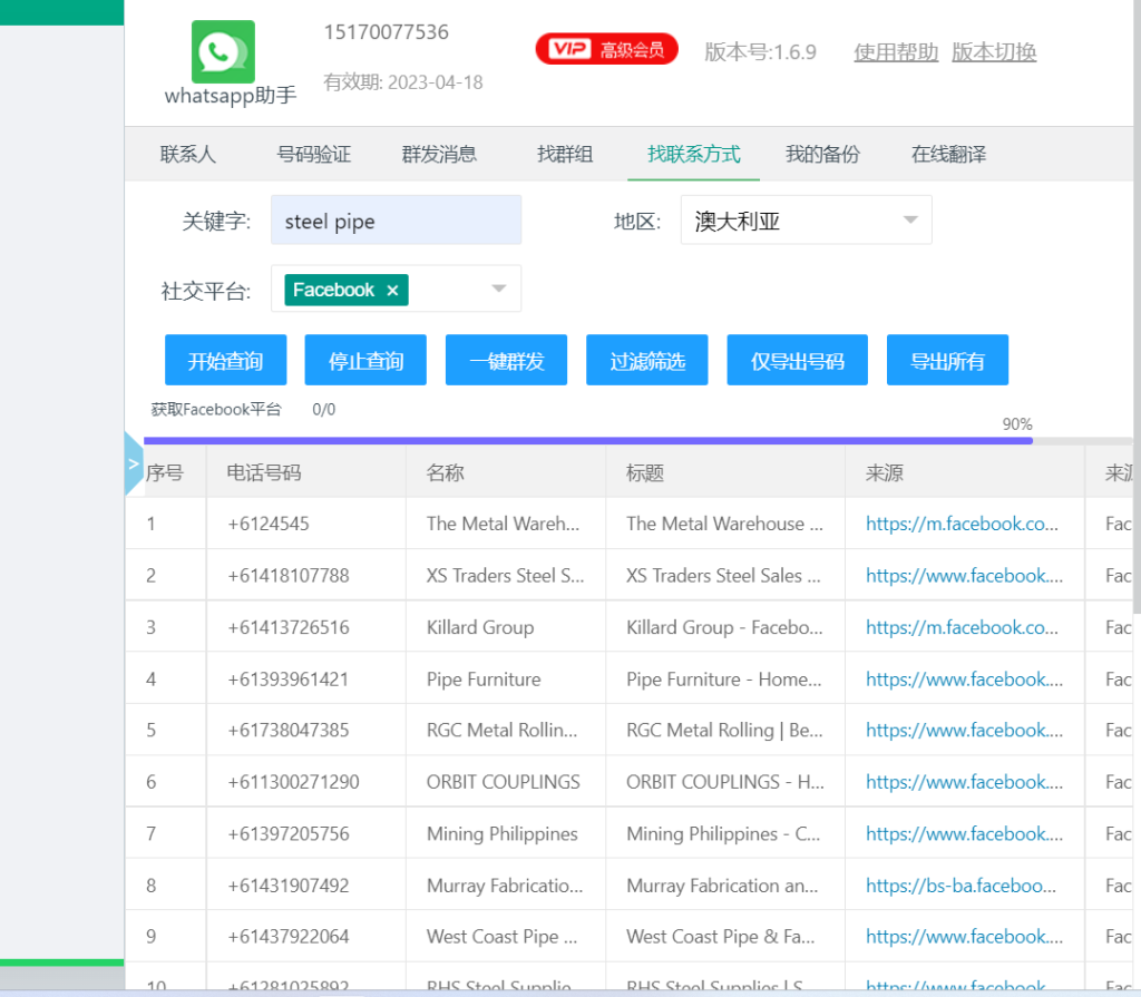 搜索电话号码:可以通过产品关键词,一键获取6大社交平台(facebook,linkedin,insgrame,YouTube,twitter,pinterest)电话号码信息,锁定精准买家