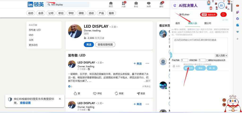 - 精准人脉添加好友:通过领英人脉搜索功能,搜索领英会员,添加高质量的领英好友
