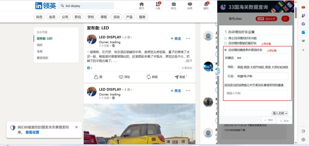 - 智能添加好友:根据现有的领英好友维度添加,大数据全平台推送