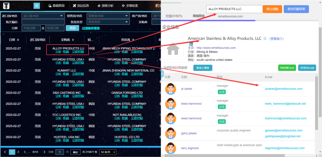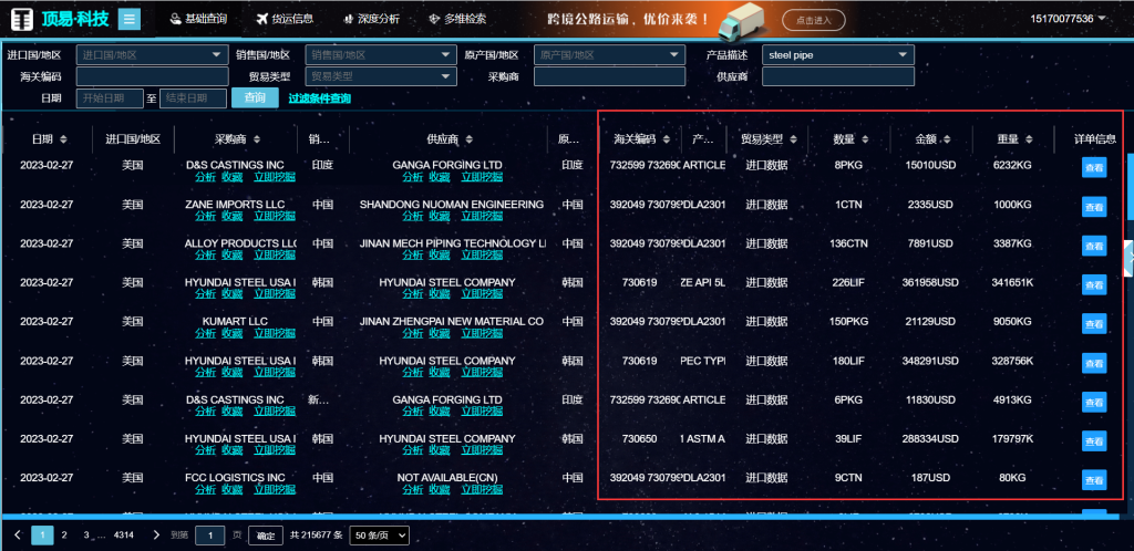 可以通过产品描述、海关编码查询33个国家进出口的记录,能看到采购商跟供应商交易的具体细节,显示价格,金额,重量,数量,提单信息。最重要的是可以分析采购商、分析同行,能看到采购商,供应商交易图谱。亮点功能来了,可以挖掘采购商的联系方式。