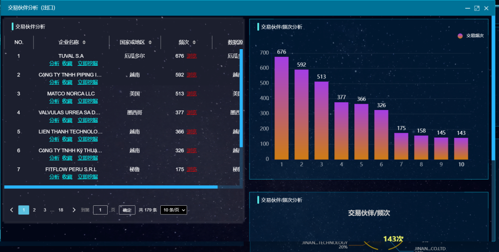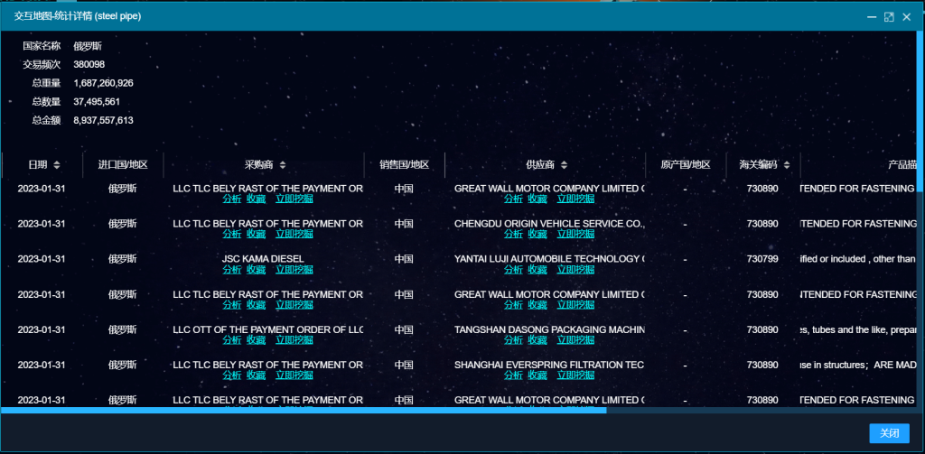 通过产品描述、海关编码能查询采购商跟供应商合作的物流信息,通过这些信息,我们能更清楚的知道,采购商的采购频次,订单量,能分析到采购商的购买实力