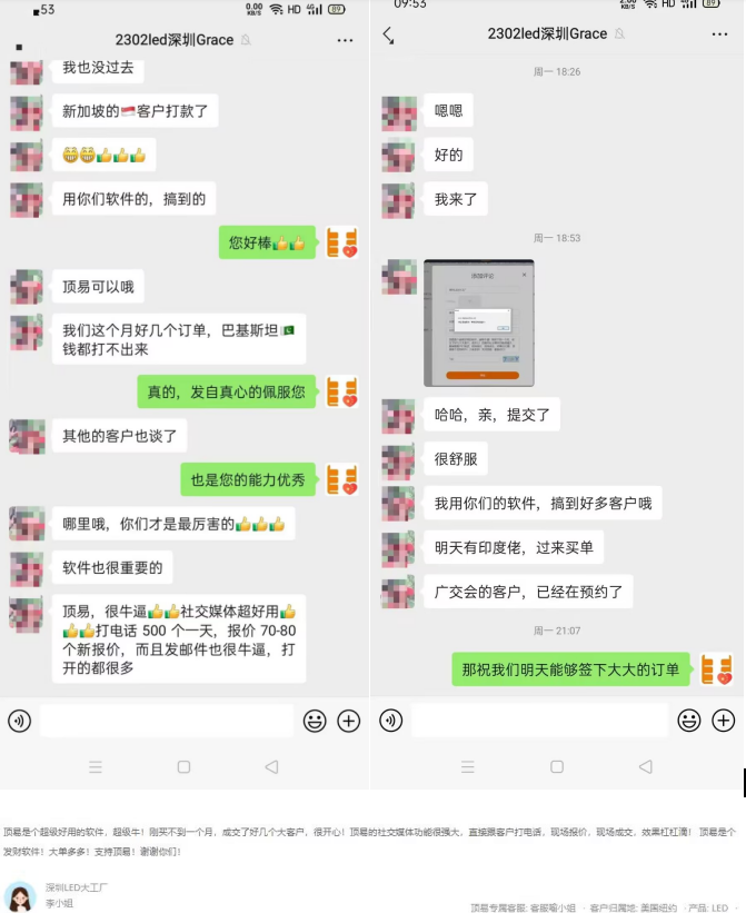 深圳做led产品的Grace,使用whatsapp的功能,直接给客户打电话,开发了几个订单,并且对社交媒体开发客户的模式很认可。