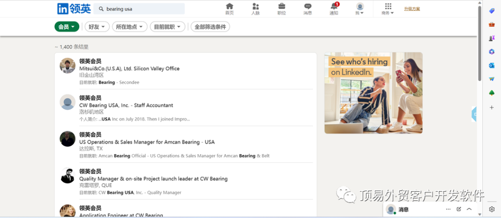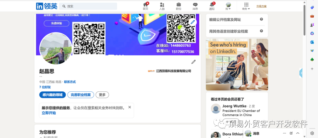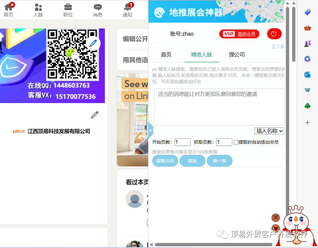 把这些基础工作做好,您在领英开发客户至少成功了70%。也可以选择使用工具在领英平台上面开发客户。