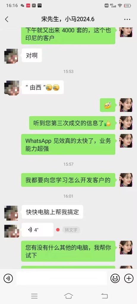 使用顶易云软件的whatsapp助手工具,发送了2次消息,就开发到印尼的客户