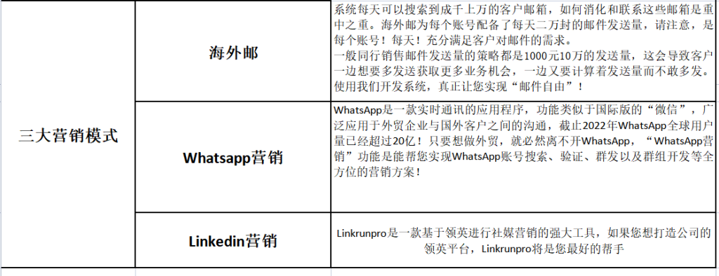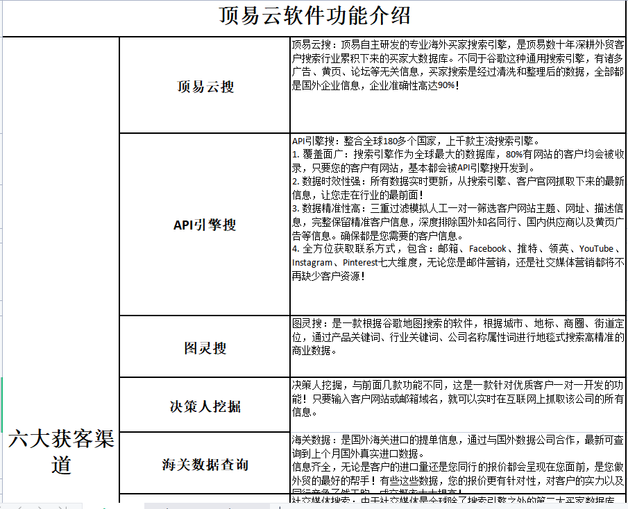 别着急,顶易云全功能系统,包含市面上所有开发客户的渠道,内置8种搜索客户的渠道,3种营销推广的方式。
