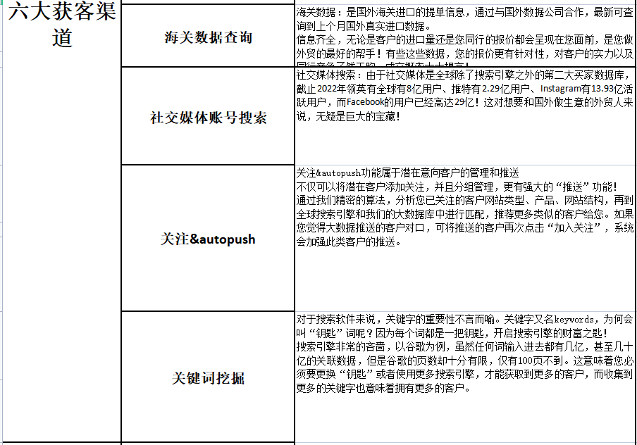 排名前5位的是社交媒体,搜索引擎,行业,黄页,海关数据等,这些渠道是我们无论如何都不能放弃的一个方式。如果想要把这些渠道一起利用起来,如何操作呢?