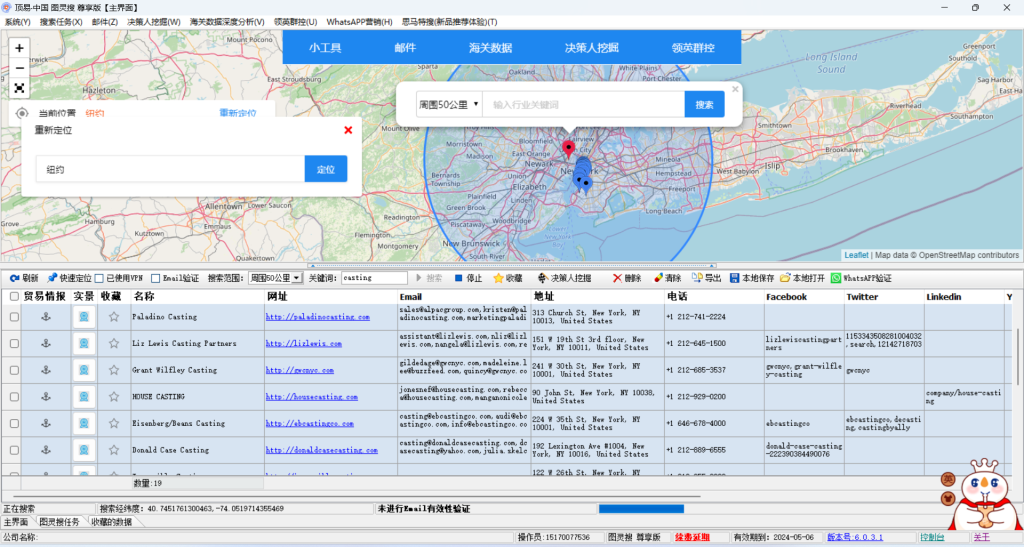 这里我们能获取到客户的公司名称,网站,邮箱,地址,电话,以及社交账号等信息,我们要做的,只要联系这些客户就好了。