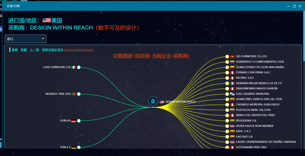 我们还可以分析这些采购商,查看采购商的上下游合作的企业,分析采购商的采购实力。