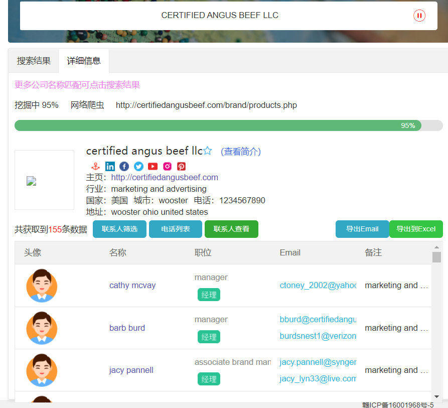 找到的采购商公司名称,我们在配合决策人挖掘工具,找到采购商的邮箱和电话,只要你联系这些客户,就有合作的机会,你不联系,同行也会联系,现在做生意就是这么卷。