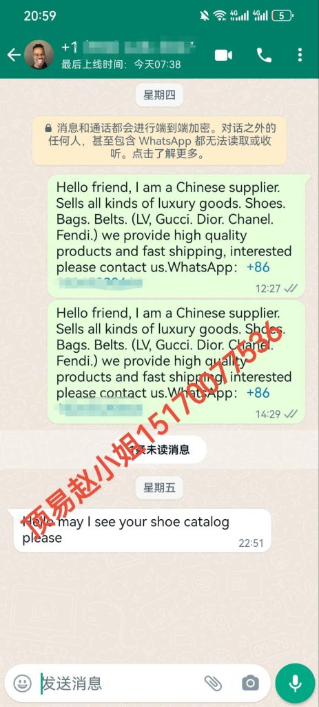 看看这个客户是做仿牌箱包,鞋子的,使用whatsapp推广的效果很好吧,只要发送了消息,就会收到客户的询价,这样的询价多了,还担心没单子吗?