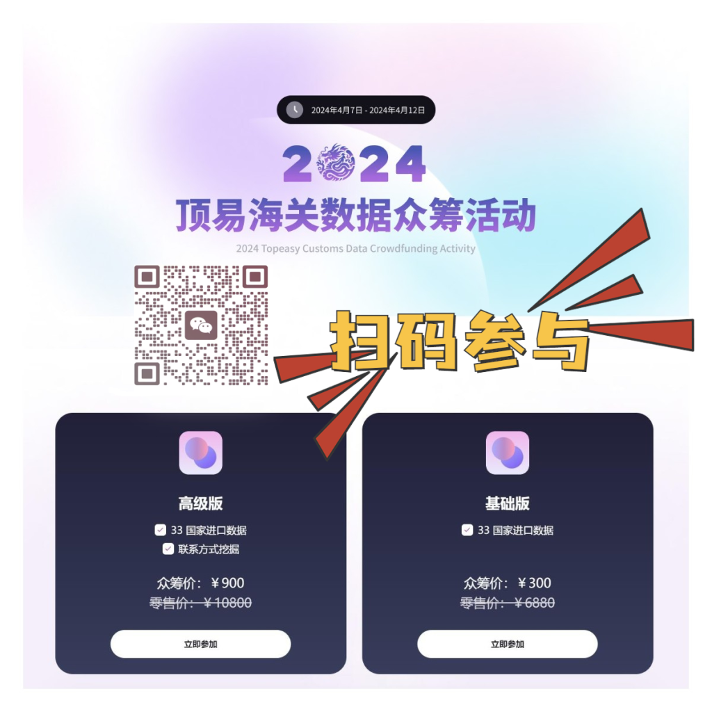 顶易海关数据众筹活动一年一次,又到了2024年海关数据众筹活动开始的时间了,大家平时了解到几万块钱的海关数据,团购活动只要300的价格就可以拥有,