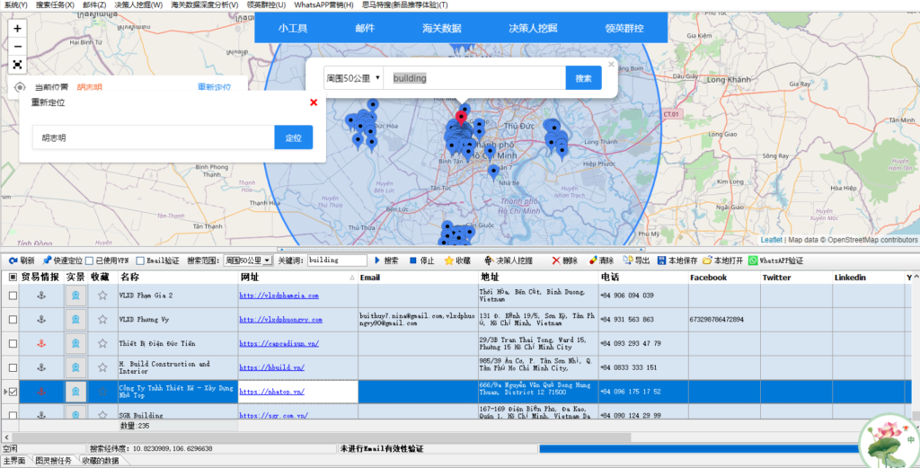 这样就可以做到指定区域开发,可以利用地图搜索的工具开发东南亚的市场。