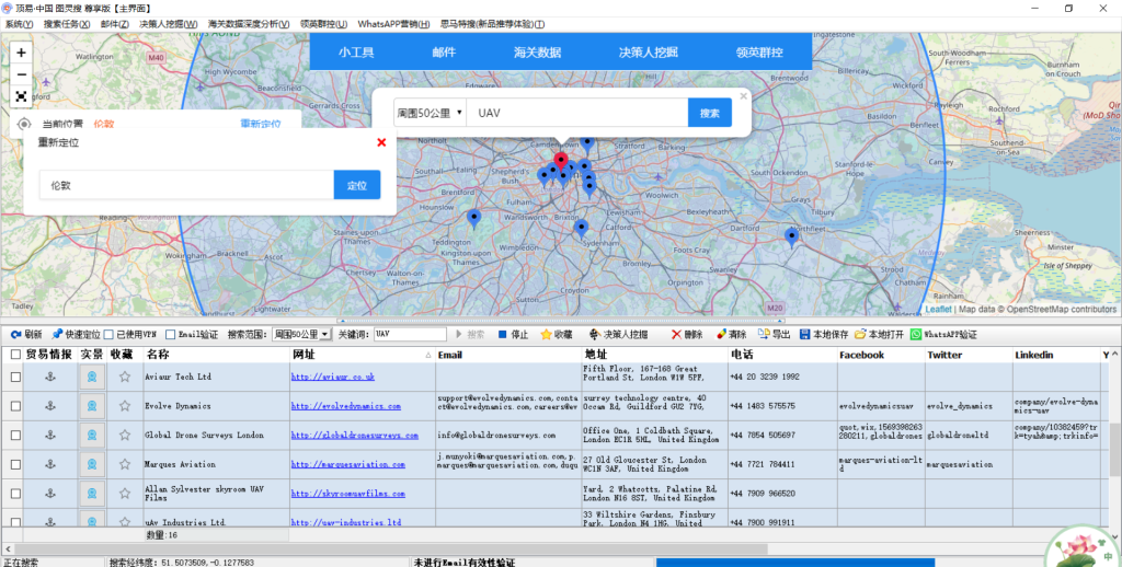 言归正传,我们不开发美国无人机的客户,那我们找其他国家无人机的客户,通过什么工具更好呢?今天给大家分享的是通过地图搜索,开发英国无人机客户的方法。