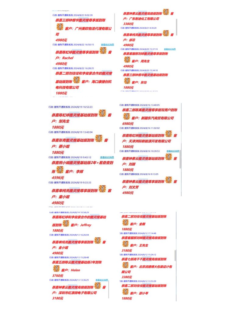 大家可以看到,众多客户选择使用顶易软件,这些外贸人都是经过了解,认可,到购买的过程,如果您也在了解阶段,看到这么多人选择,肯定也是给了您很多信心吧,在给大家看一下,众多客户的效果反馈,如果一个客户说效果好是运气,这么多的客户都说效果好,那就是软件的实力啦。