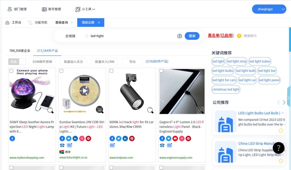 顶易云搜索客户,优化搜索算法,提高搜索精度。 关键词可以添加+,或者是大写的OR,AND等,搜素结果非常精准,非常贴合产品和行业需求。 只有搜索的客户准确了……