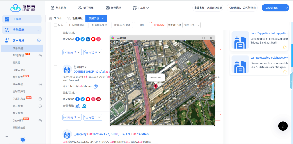 顶易云搜再次升级新功能,升级了地图交互的功能,可以查看采购商所在的位置,可以全方位立体的查看采购商的公司规模,企业经营情况,了解更多企业详情。方便我们后续更好的转化客户。