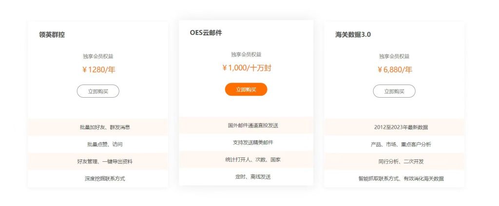 这几款工具,费用都是在1000块钱以下的,无论您是个人soho,还是外贸公司的业务员,您想有自己的工具做自主开发,这些功能都是非常合适的,有感兴趣的,可以咨询哦。
