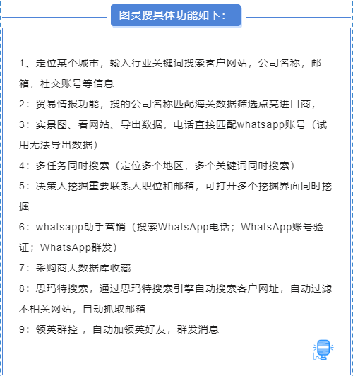 来看看,这个客户购买的图灵搜+whatsapp开发客户的功能有哪些?