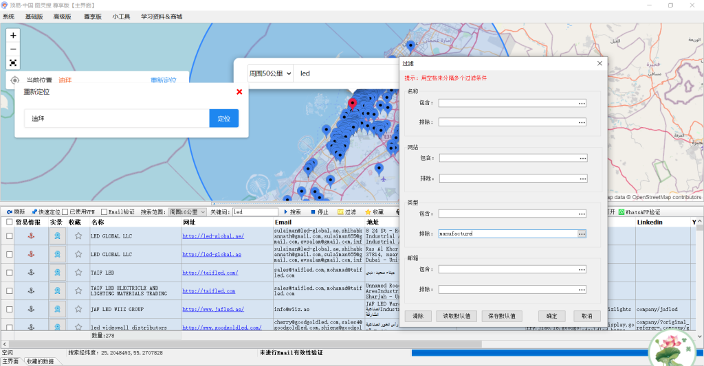 可以帮我们针对老客户类型过滤,我们用地图搜索到的客户类型,可能是贸易商,比如经销商,批发商,分销商,也有可能是商店,生产型的公司,我们有的时候不需要找生产商,是我们的同行,那我们就可以过滤掉生产商。